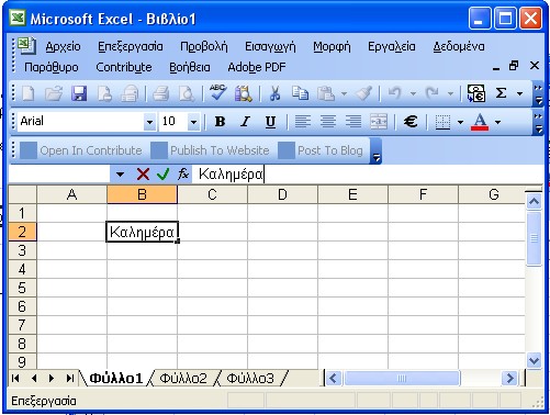 Εναλλακτικά μπορούμε να αλλάξουμε τα περιεχόμενα ενός κελιού από την Formula Bar, αφού πρώτα το ενεργοποιήσουμε.