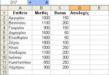Να γραφούν οι απαραίτητοι τύποι, οι οποίοι θα υπολογίζουν και θα εμφανίζουν τις Αποδοχές των υπαλλήλων στα κατάλληλα κελιά. Εννοείται ότι :
