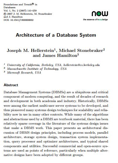 Joseph M. Hellerstein, Michael Stonebraker, James Hamilton