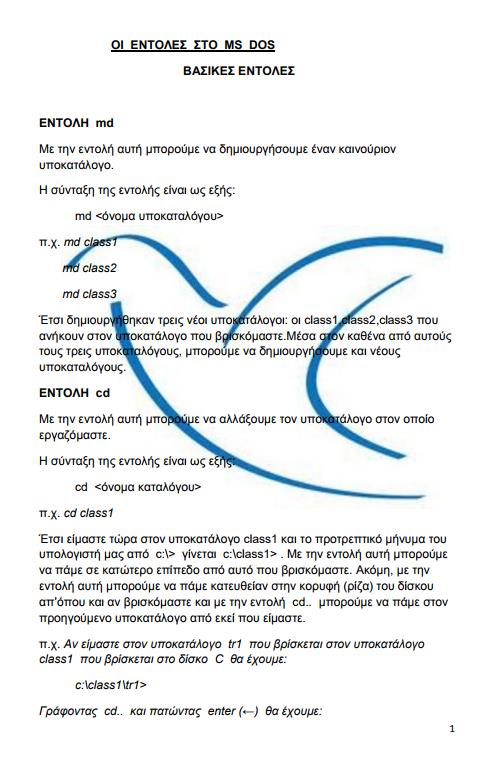 Τα μαθήματα που περιέχουν ύλη σχετική με το MS-DOS, διδάσκονται συνήθως στα πρώτα εξάμηνα ειδικοτήτων πληροφορικής, τόσο των ΙΕΚ και ΕΠΑΛ/ΕΠΑΣ, όσο και τριτοβαθμίων ιδρυμάτων. Στις παρακάτω προτεινόμενες βιβλιογραφικές παραπομπές, μπορείτε να βρείτε υλικό τόσο για την εμβάθυνση στην ύλη των σχετικών μαθημάτων, όσο και για την εκπόνηση και υλοποίηση τυχόν εργασιών που έχετε αναλάβει στα πλαίσια του προγράμματος σπουδών σας. Επίσης μπορείτε να βρείτε πλήθος λυμένων και άλυτων ασκήσεων για εξάσκηση και ανατροφοδότηση της ύλης που έχετε ήδη διδαχθεί.
