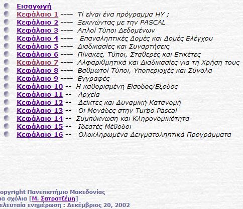 Στην παρούσα κατηγορία, θα βρείτε πηγές σχετικές με την Γλώσσα Προγραμματισμού Pascal, τη γενική δομή των προγραμμάτων της, τους τύπους δεδομένων που αυτή χρησιμοποιεί, τις δηλώσεις σταθερών και μεταβλητών, τις απλές και προχωρημένες προγραμματιστικές της δομές κτλ. Περισσότερα...