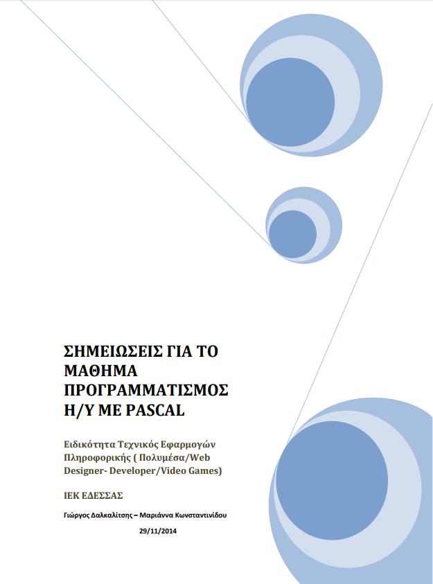 Το μάθημα "Γλώσσα Προγραμματισμού Pascal", καθώς και αντίστοιχα μαθήματα με συναφή τίτλο και παρεμφερή διδακτέα ύλη, διδάσκονται συνήθως στα πρώτα εξάμηνα ειδικοτήτων πληροφορικής, τόσο των ΙΕΚ και ΕΠΑΛ/ΕΠΑΣ, όσο και τριτοβαθμίων ιδρυμάτων. Στις παρακάτω προτεινόμενες βιβλιογραφικές παραπομπές, μπορείτε να βρείτε υλικό τόσο για την εμβάθυνση στην ύλη των σχετικών μαθημάτων, όσο και για την εκπόνηση και υλοποίηση τυχόν εργασιών που έχετε αναλάβει στα πλαίσια του προγράμματος σπουδών σας. Επίσης μπορείτε να βρείτε πλήθος λυμένων και άλυτων ασκήσεων για εξάσκηση και ανατροφοδότηση της ύλης που έχετε ήδη διδαχθεί.
