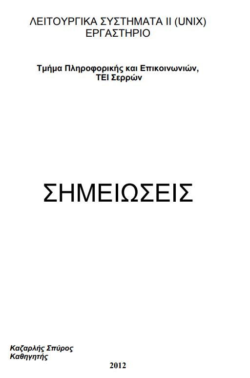 Λειτουργικά Συστήματα (Τεύχος Εργαστηριακών Ασκήσεων UNIX)